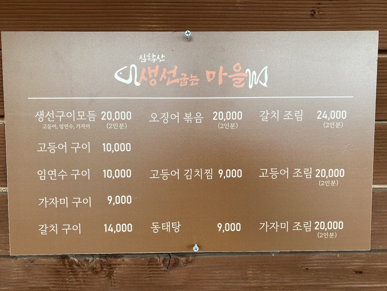[ 심학산 생선굽는마을 메뉴 가격 ]