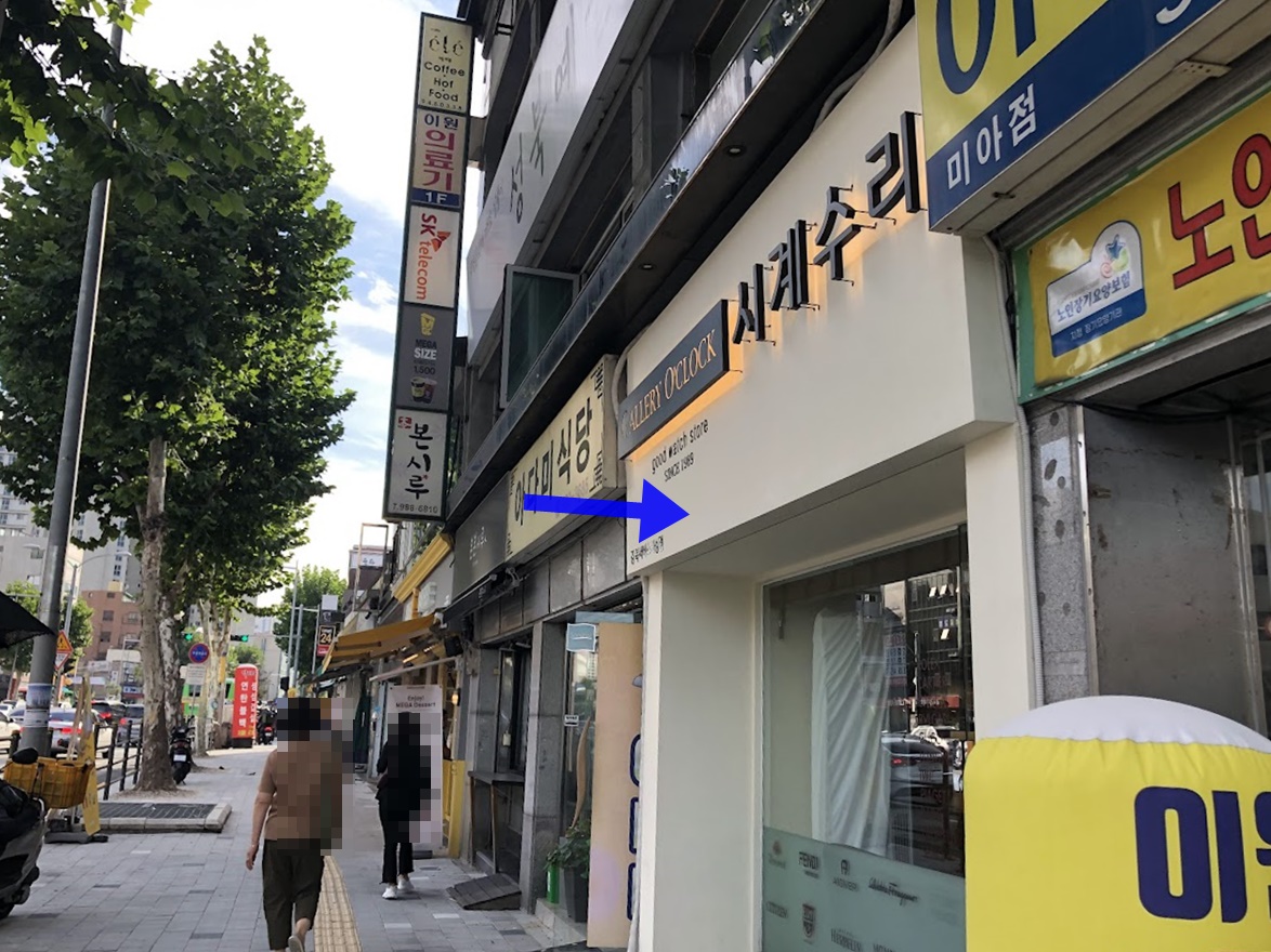 위 사진에 보이는 하얀 간판에 시계수리라고