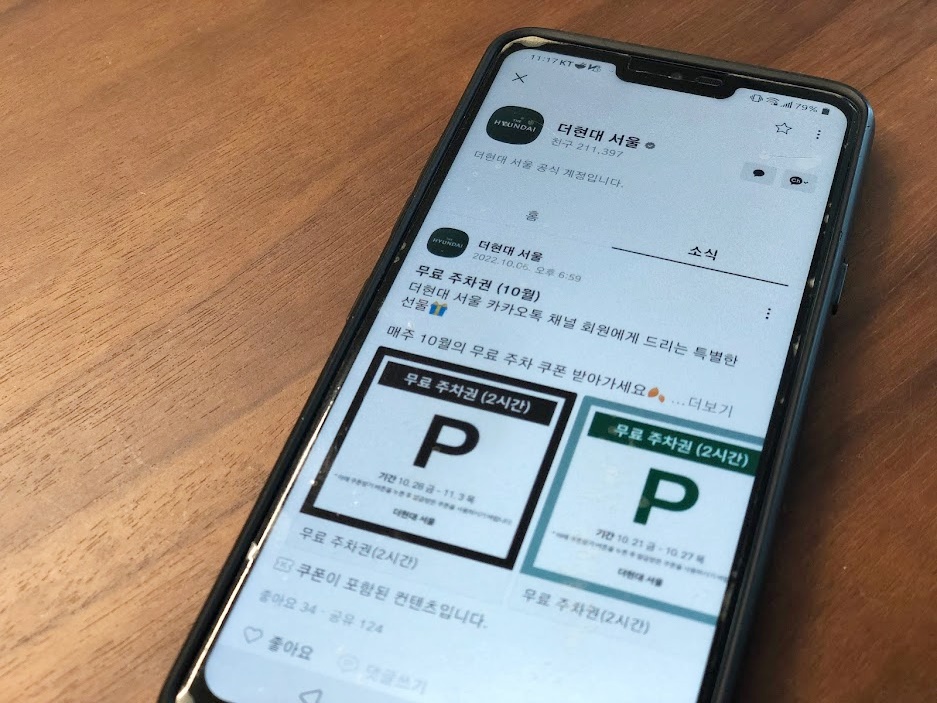 무료주차 쿠폰 2시간을 다운로드할 수 있어요.