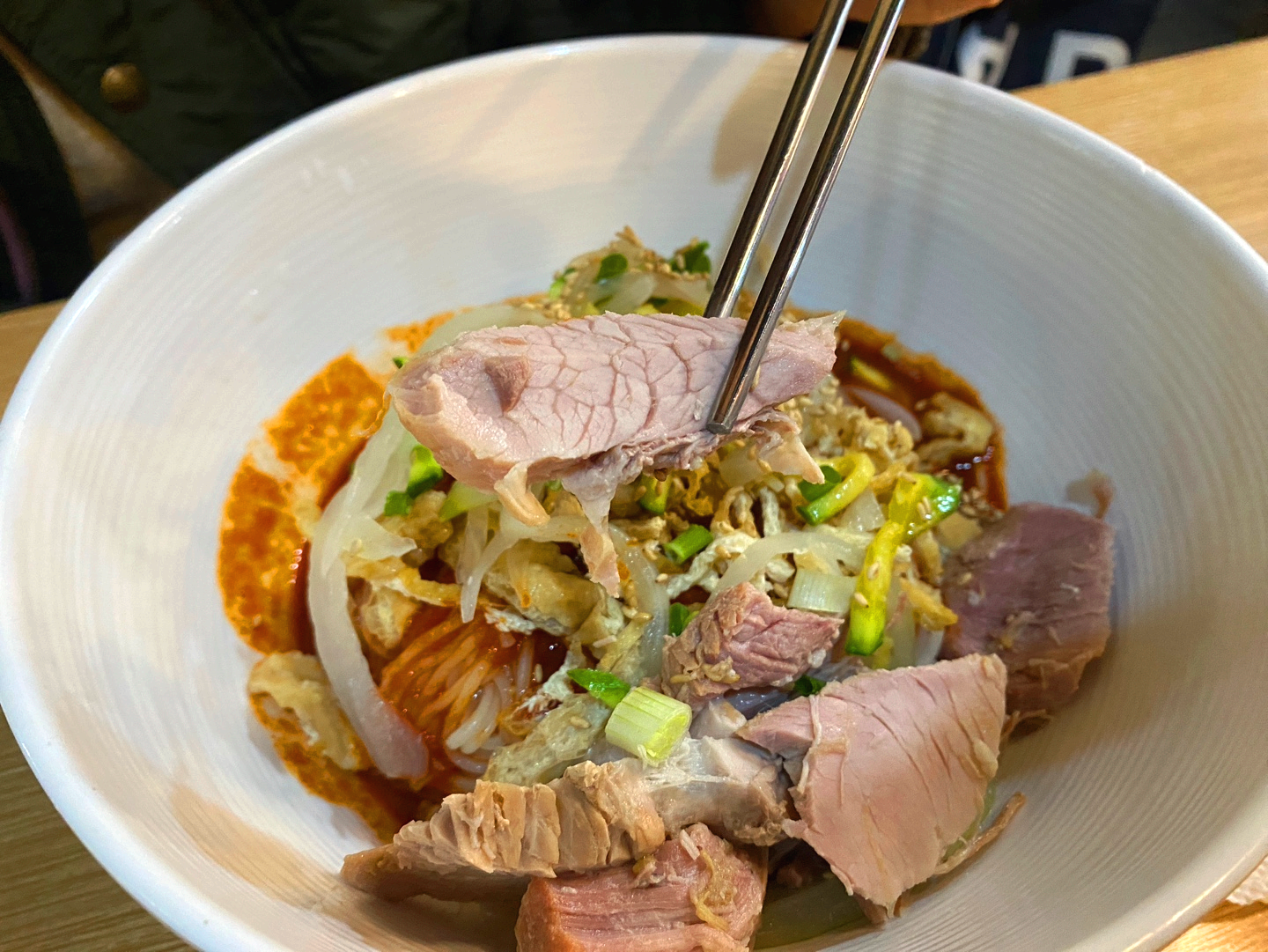 비빔국수에 들어간 고기도 엄청 두툼하다.