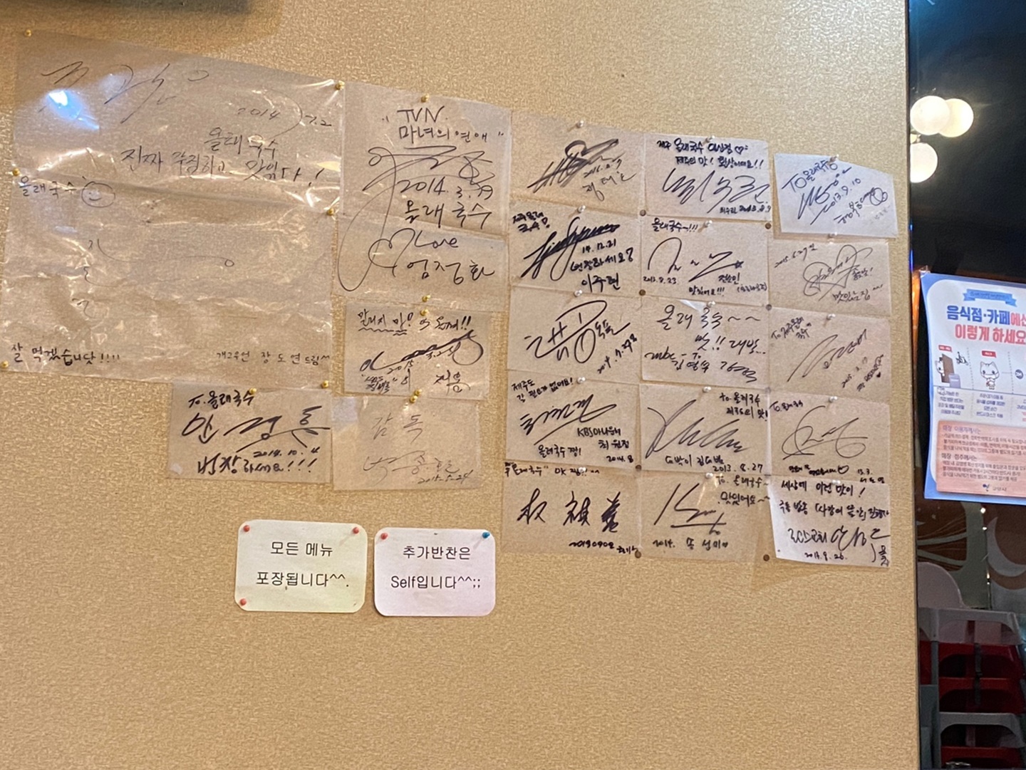 한쪽 벽면에 연예인 싸인이 가득하다.